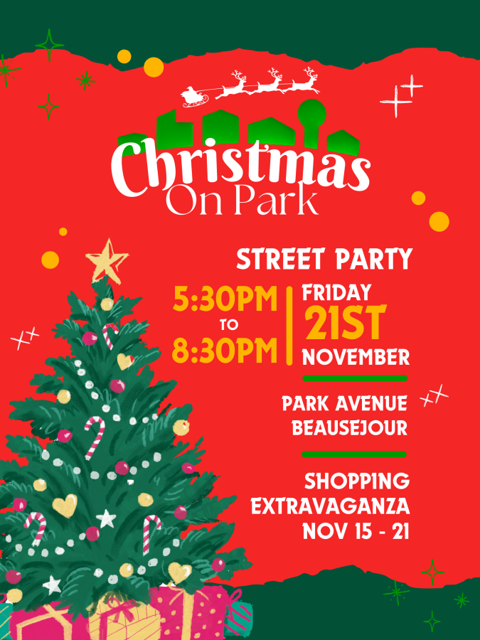 Participa en el "Shopping Extravaganza" la semana previa a la fiesta en la calle para disfrutar de increíbles ofertas y regalos en los comercios de nuestra comunidad. Para más información, visite nuestra página de Facebook Christmas on Park o envíe un correo electrónico a christmasonpark@gmail.com.